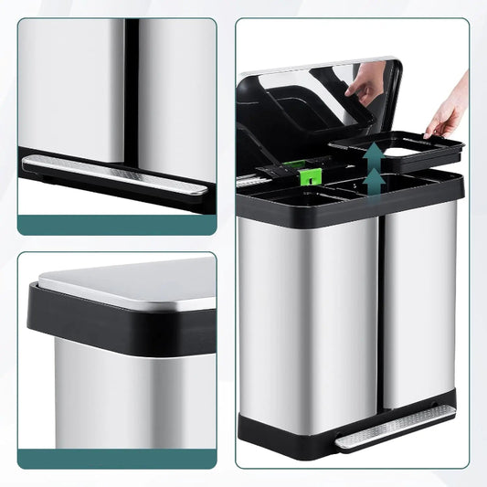 La poubelle double compartiment repose sur deux bacs distincts, parfois munis de seaux intérieurs amovibles. Chaque compartiment reçoit un sac différent, ce qui permet de trier directement au moment de jeter les déchets, sans étape supplémentaire. Selon les modèles, l’ouverture peut se faire par pédale, par couvercle basculant ou par mécanisme manuel.